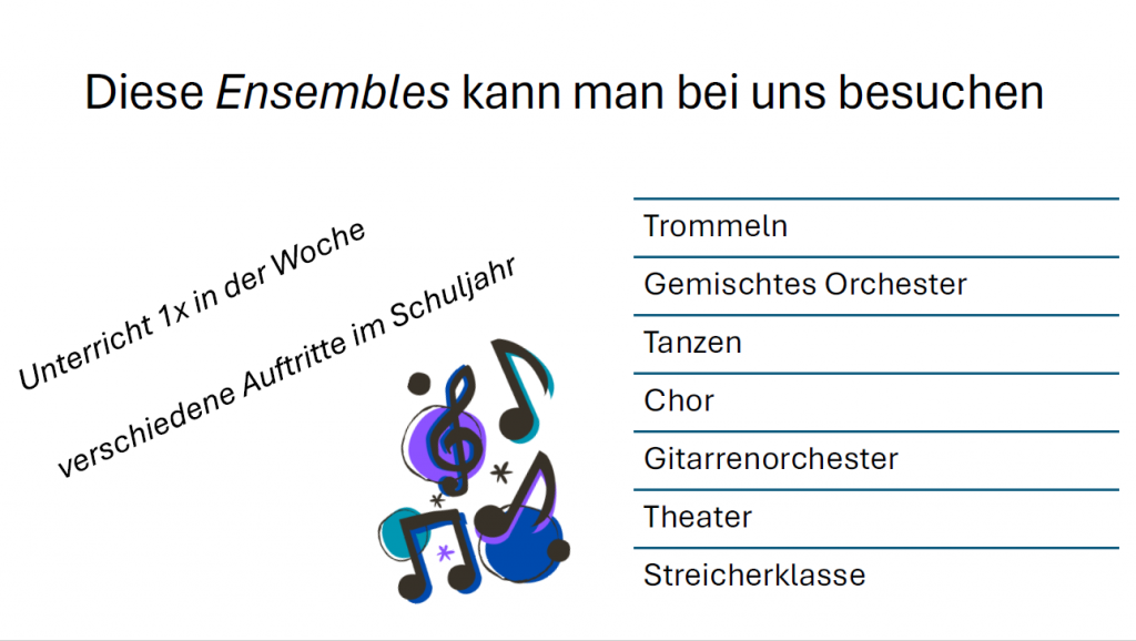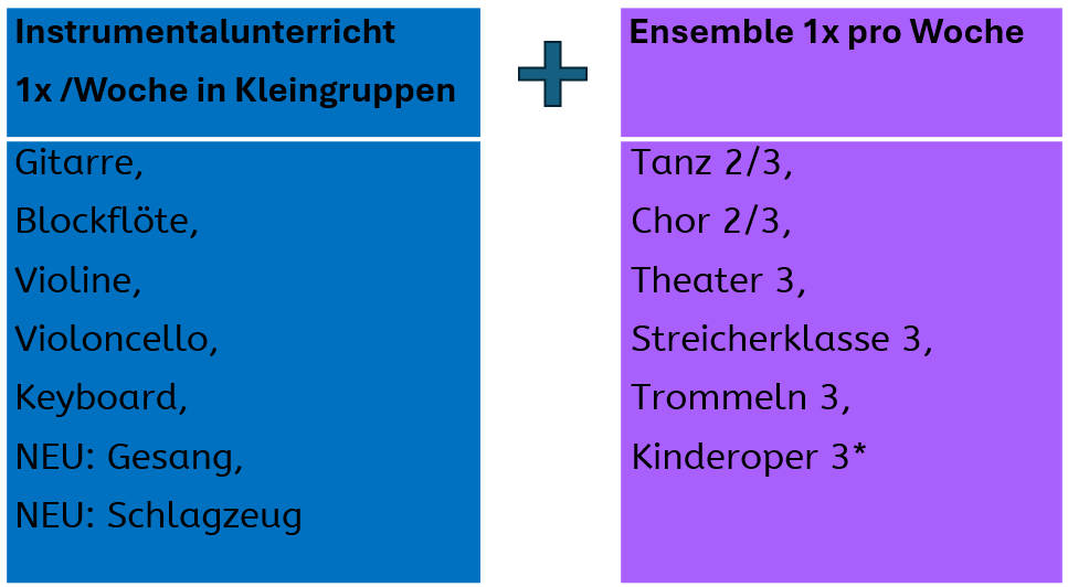 *Kinderoper kann in der 3. Klasse als Ensemble der Musikbetonung gewählt werden. Weitere Informationen finden Sie unter Kooperationen -> Kinderoper